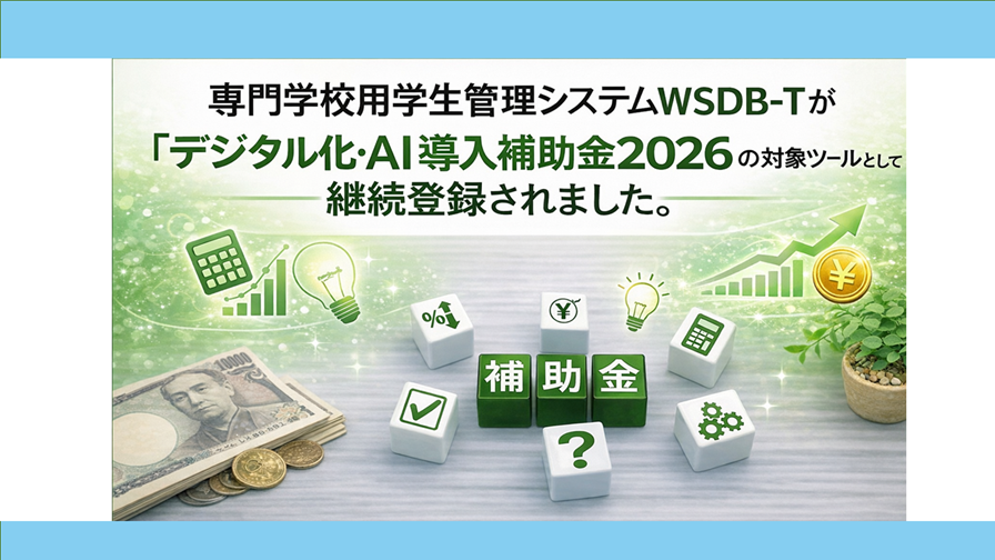 専門学校用「学生管理システムWSDB-T」がデジタル化・AI導入補助金2026の対象ツールとして、継続登録されました。